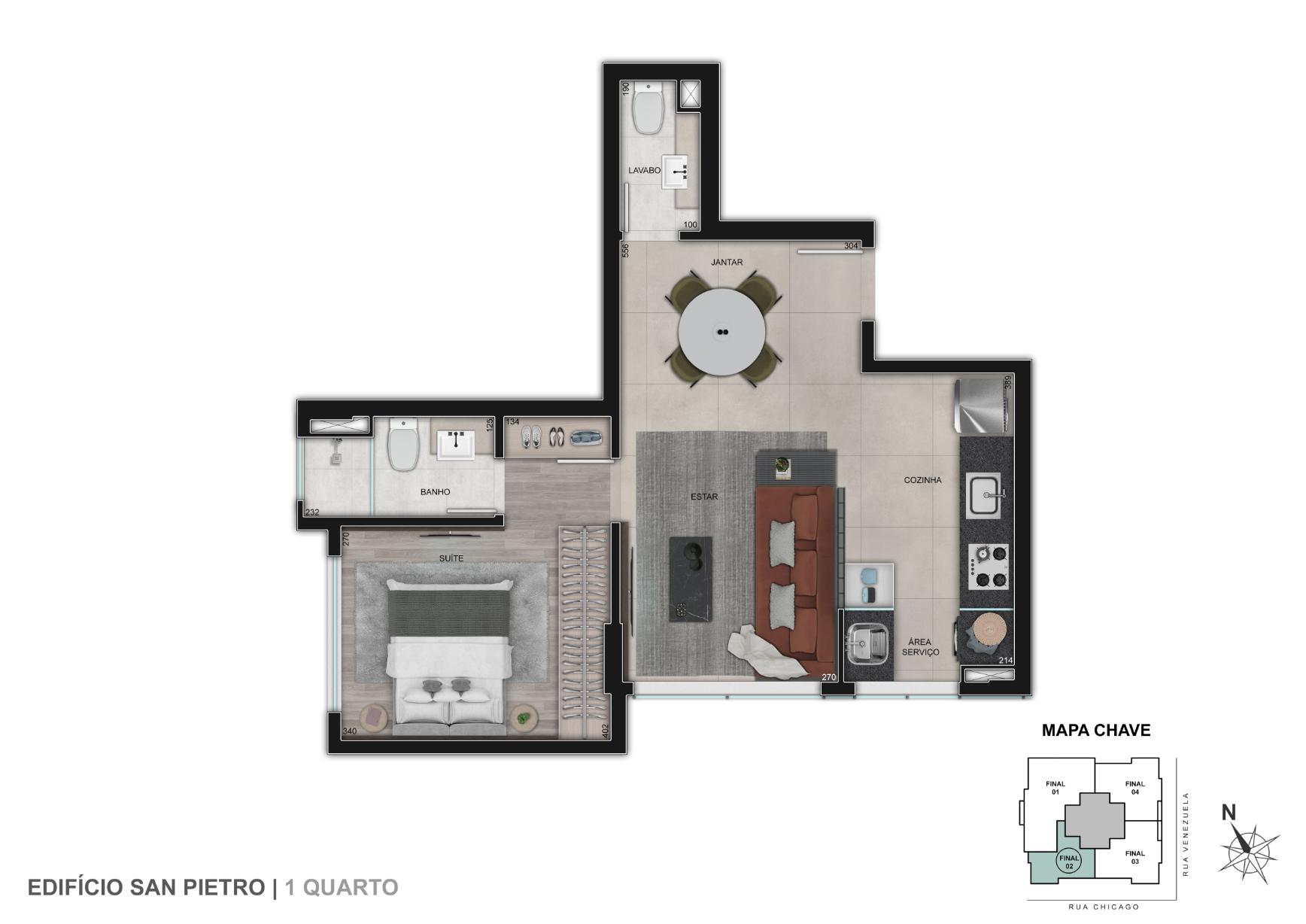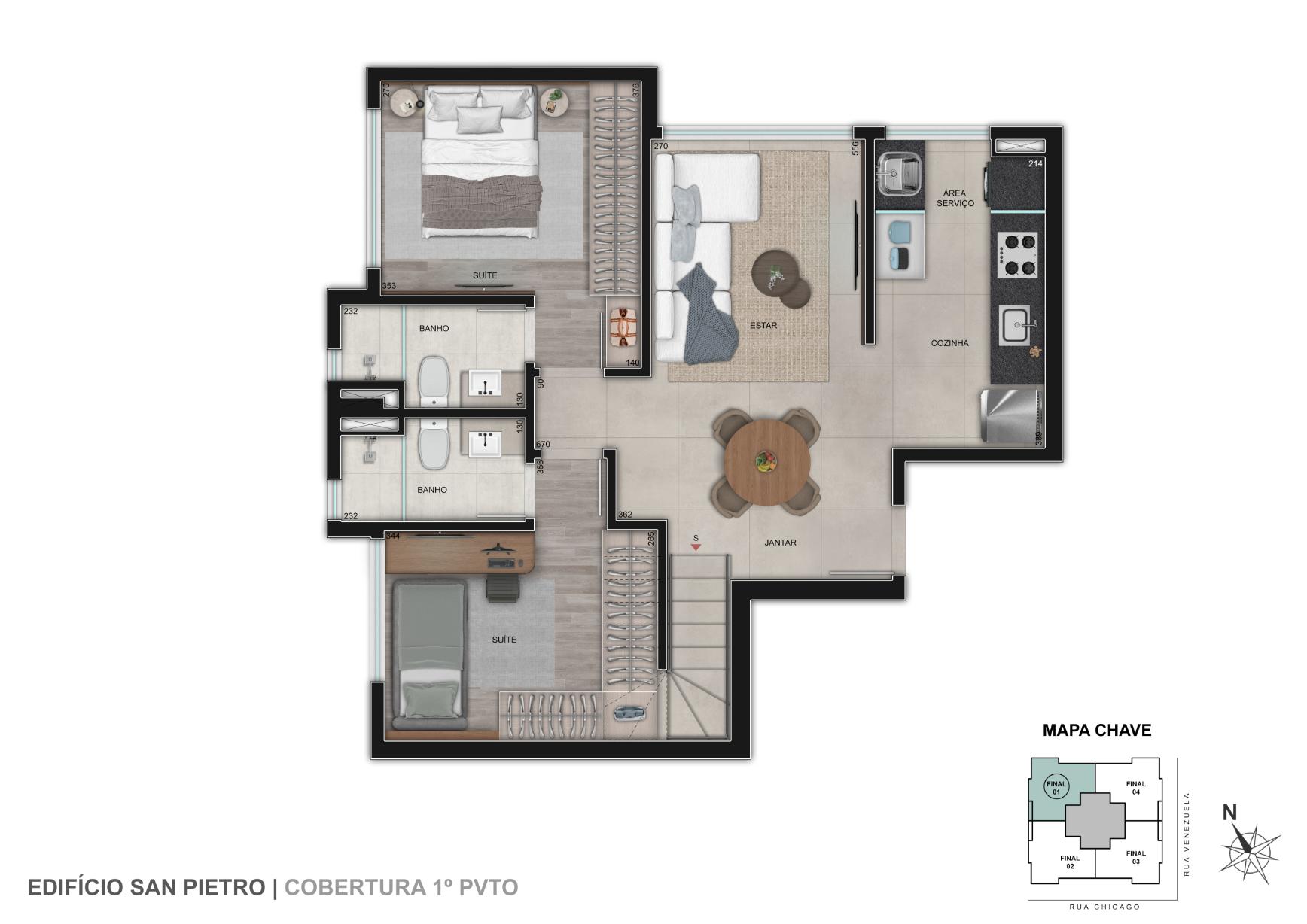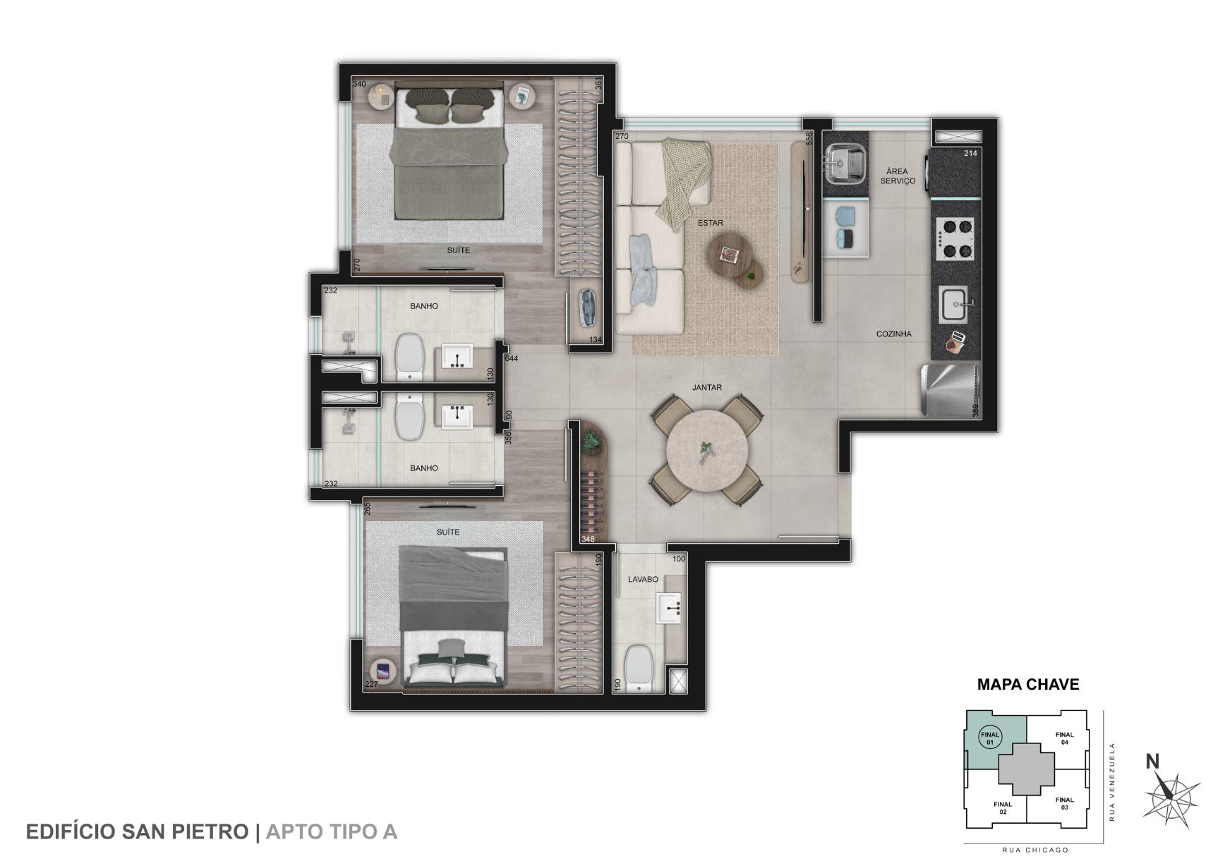 Em cada detalhe do seu novo apartamento, você conhecerá novos padrões de exclusividade. Escolha a planta que reflete seu estilo e sinta-se em casa desde o primeiro momento.
