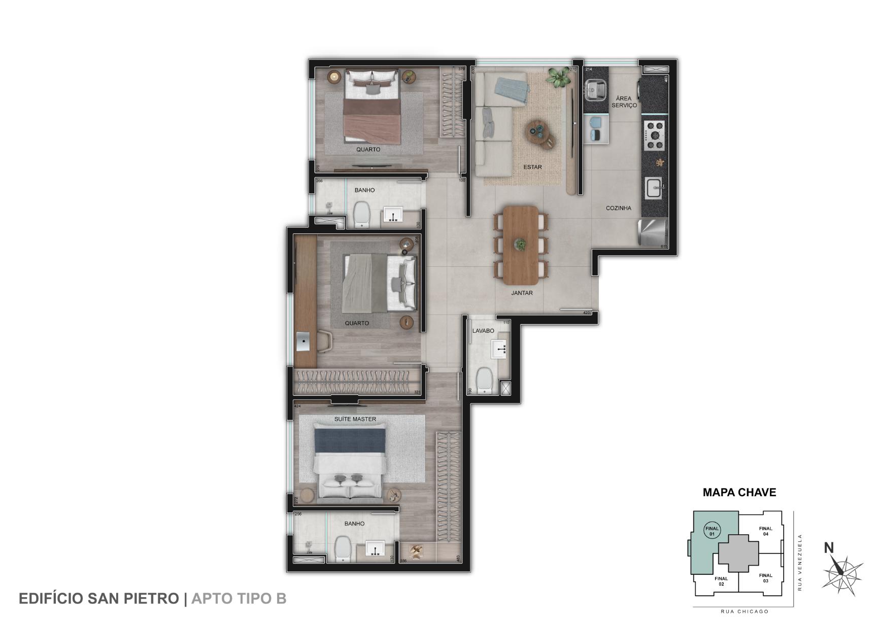 Nos apartamentos do San Pietro, cada detalhe foi meticulosamente pensado para criar uma experiência que transcende o comum e define novos padrões de excelência. São acabamentos nobres e ambientes aconchegantes e refinados desenhados para sua melhor fase.